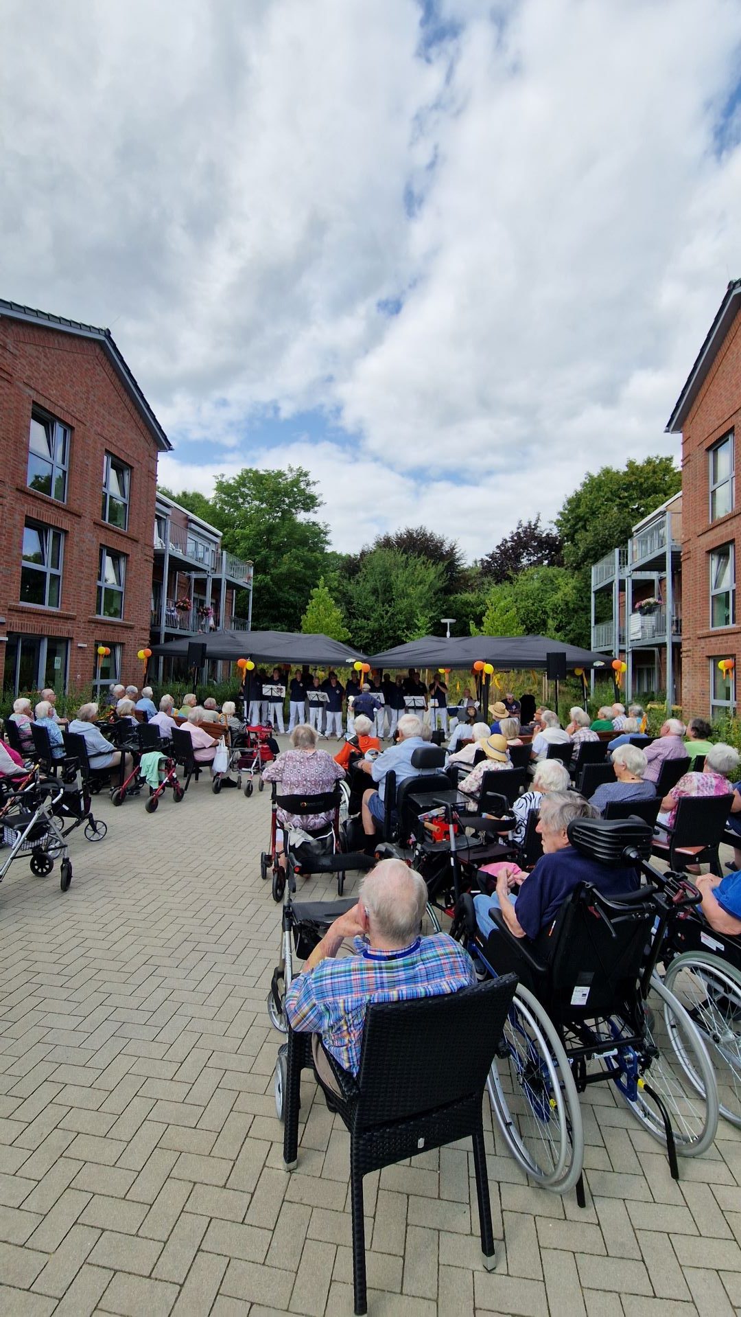 22.08.2024 In den vergangenen Wochen fanden in unseren Einrichtungen die alljährlichen Sommerfeste statt. Den Anfang machte das Haus am Berg. Dort waren wir leider nicht mit schönem Sommerwetter gesegnet. Stattdessen gab es ausgerechnet an diesem Tag ein Unwetter mit Starkregen. Glück im Unglück: Während des Auftritts des Soltauer Shantychors war es trocken und der Regen kam erst danach. So konnte der Chor mit seinen Shantys und diversen bekannten Hits noch für gute Laune und den einen oder anderen Ohrwurm sorgen. Deutlich mehr Glück mit dem Wetter hatte eine Woche später das Haus im Dorf. Dort sorgten die Flamenco-Tänzerinnen von Flamenco de Anabel mit ihren bunten Kleidern und ausdrucksstarken Tänzen für ordentlich Stimmung. Übrigens: Anabel bietet auch Flamenco-Kurse an. Alle Infos dazu findet ihr auf ihrer Internetseite - www.flamenco-anabel.de Das große Finale gab es dann beim Sommerfest im Wohnpark Witthöftsfelde. Dort durften wir uns noch einmal an den Klängen maritimer und regionaler Lieder des Soltauer Shantychors erfreuen. Bei meist strahlendem Sonnenschein sorgte der Chor für ordentlich Stimmung. Es wurde mitgesungen, geklatscht, geschunkelt und sogar getanzt. Um die Lieder immer wieder anhören zu können, konnte im Anschluss an den Auftritt die CD des Soltauer Shantychors erstanden werden. Der Soltauer Shantychor ist auch das beste Beispiel dafür, dass Musik und Gesang fit halten. So stand in der Reihe der Sänger auch einer im hohen Alter von 96 Jahren. Der Chor sucht auch noch neue Sänger und/oder Musikanten. Alle Infos zum Chor findet ihr auf der Internetseite: www.soltauershantychorev.de